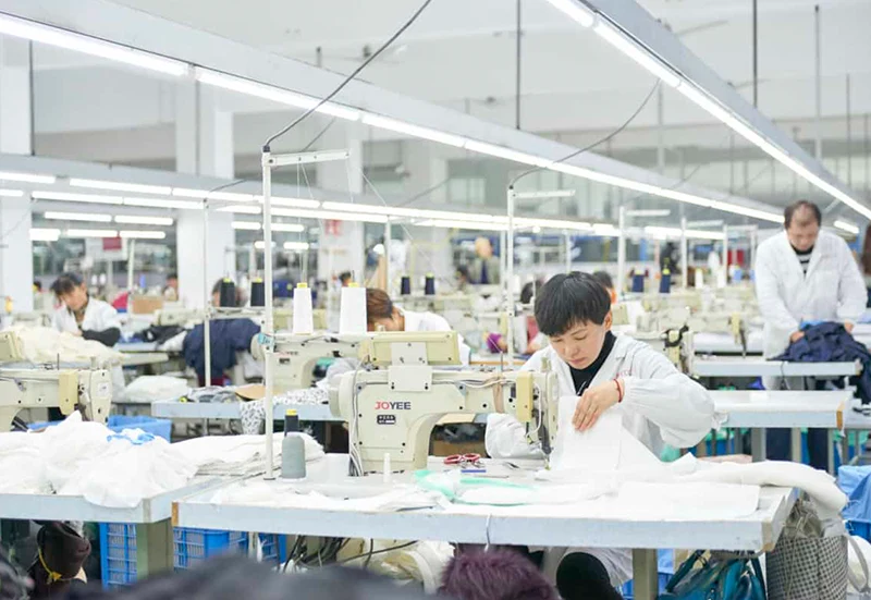 工場には4つの衣類生産ラインがあり、 月に1000セットの衣類を生産します。